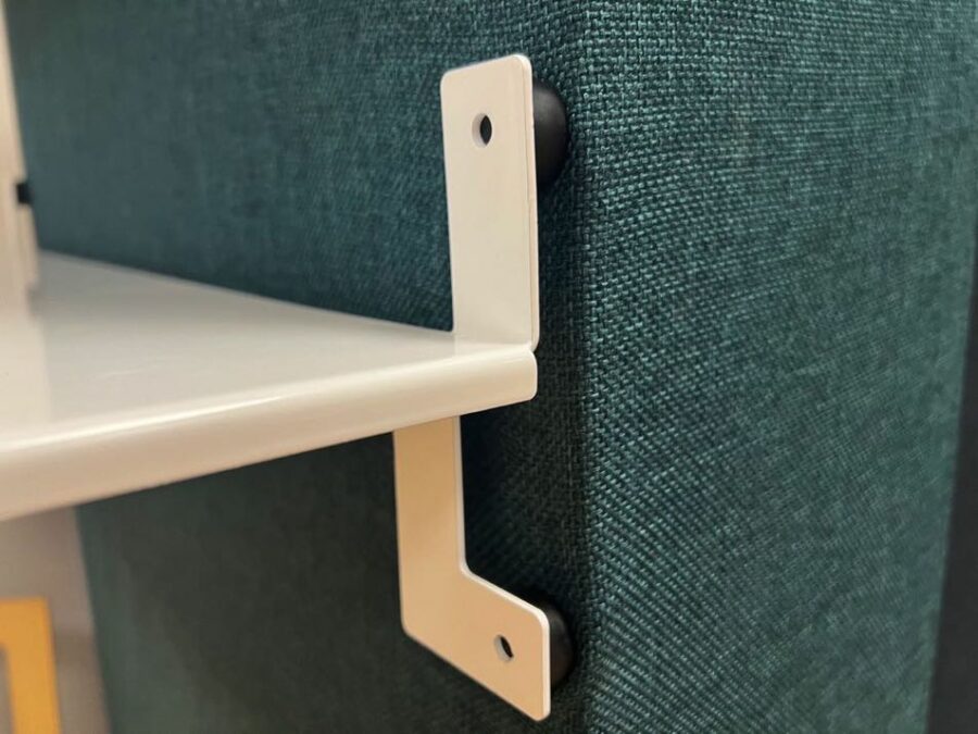 Mensola per pannelli fonoassorbenti e bass trap Oudimmo acoustic Design. Disponibile in due colori Bianco e Nero Sablè. A scelta con viti per legno (per AkuPan e AkuTrap) o con aggancio magnetico (per serie LowMaster).