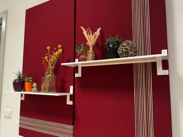 AkuShelf è la nuova serie di mensole adatte all’aggancio su pannelli fonoassorbenti e bass traps Oudimmo Acoustic Design.
